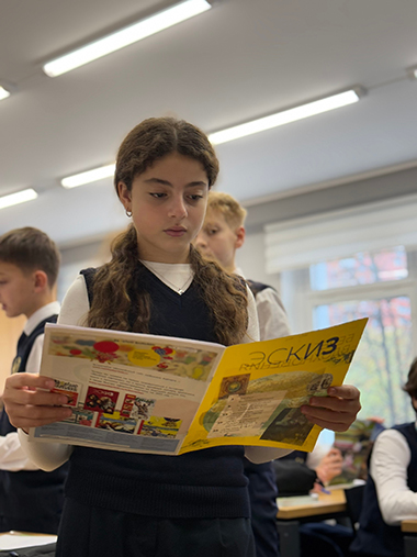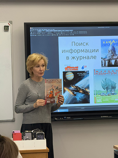 Педагог-библиотекарь Ольга Васильевна познакомила шестиклассников с журналами «Юный техник», «Квантик», «Лазурь», «Эскиз». В них печатаются самые различные интересные статьи о научных открытиях, о жизни в обществе, о культуре разных народов, о спортивных достижениях, исторические открытия и факты, разные полезные советы по организации образа жизни и быта.