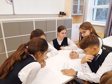 Ученики 9А класса пришли в гости к 5Г классу и провели математическое состязание. Пятиклассники решали задачи на смекалку, разгадывали ребусы, составляли анаграммы. Было интересно и познавательно.