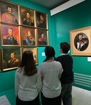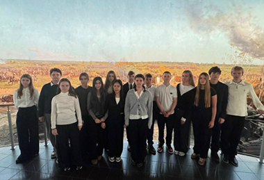 Кульминацией визита стало посещение самой панорамы — уникального произведения искусства, созданного Францем Рубо к 100-летию сражения. Огромное полотно, опоясывающее зрителя по кругу, мастерски передало напряжённость, масштаб и трагизм того дня. Под руководством экскурсоводов наши школьники учились «читать» картину: находить ключевые точки обороны — Багратионовы флеши и батарею Раевского, различать строй русских и французских полков, наблюдать за действиями кавалерии и артиллерии.