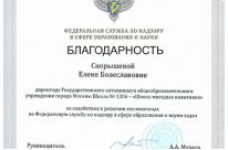Благодарность объявлена Спорышевой Елене Болеславовне за содействие в решении возложенных на Федеральную службу по надзору в сфере образования и науки задач.